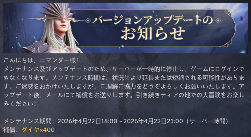 こんにちは!3月30日に行われるアップデート情報が来ていたので見ていきたいと思います。
