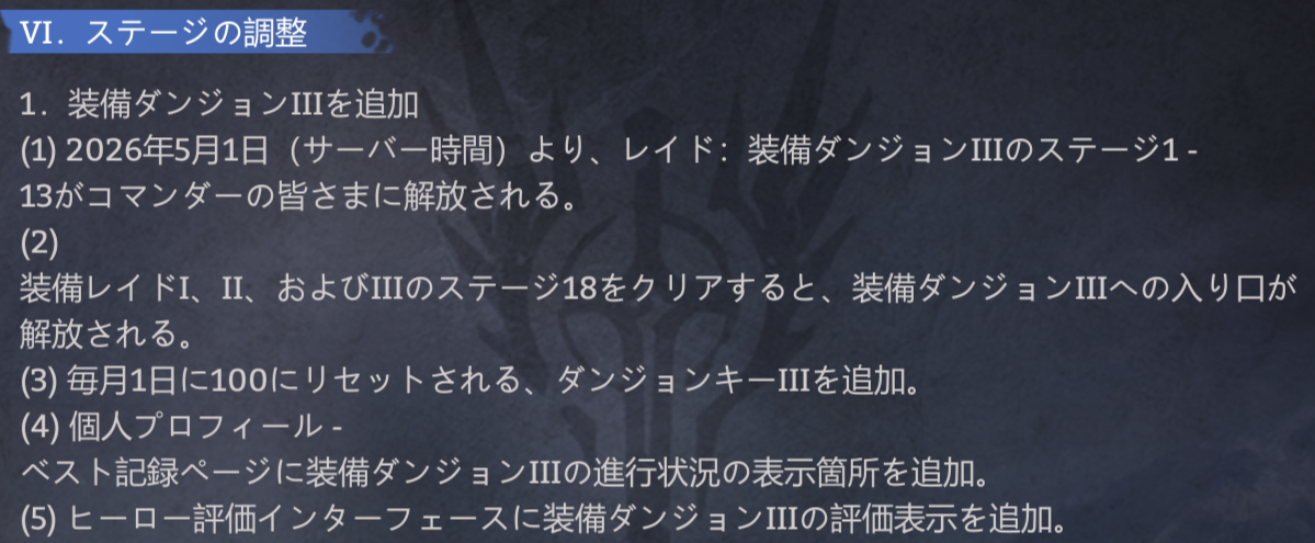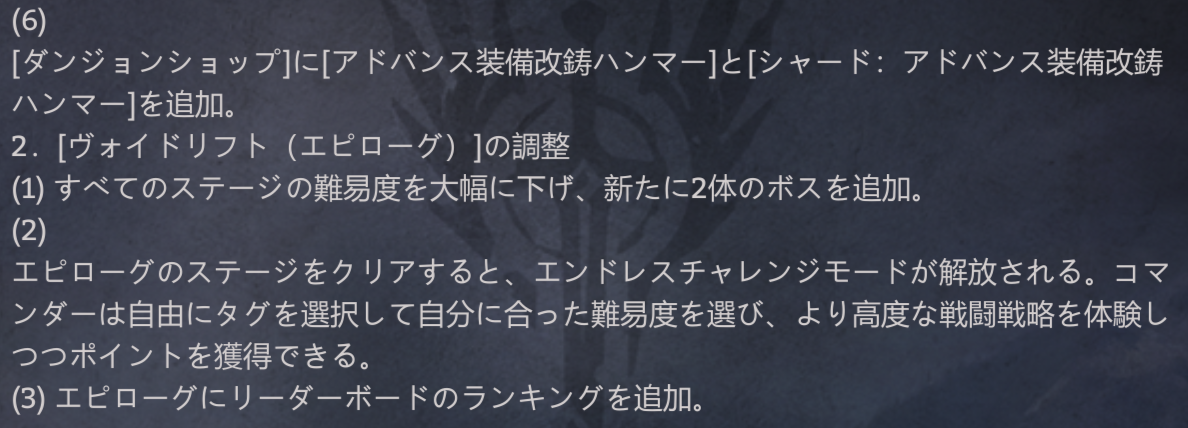 長い。盛りだくさんに見えますが主なやることは装備ダンジョンⅢとヴォイドリフトエピローグでしょうか。そろそろエンジョイ勢なりの攻略記事を書いてみたいと思っています。ではまた👋
