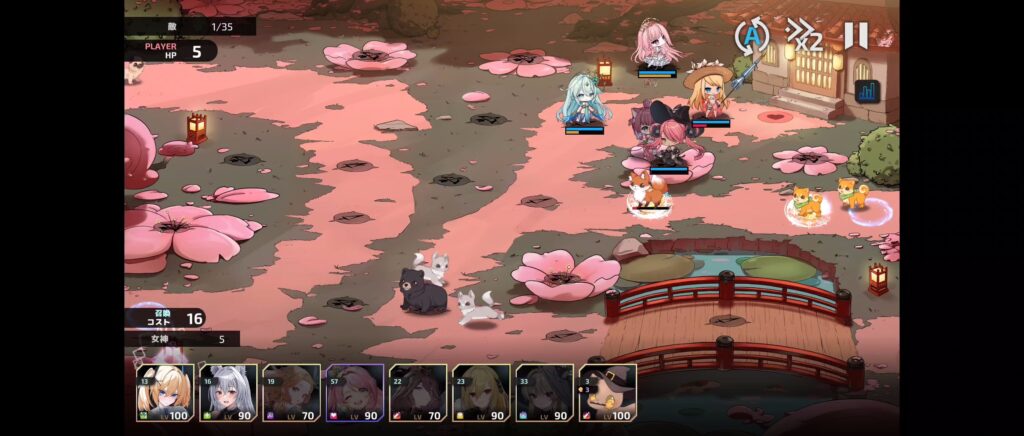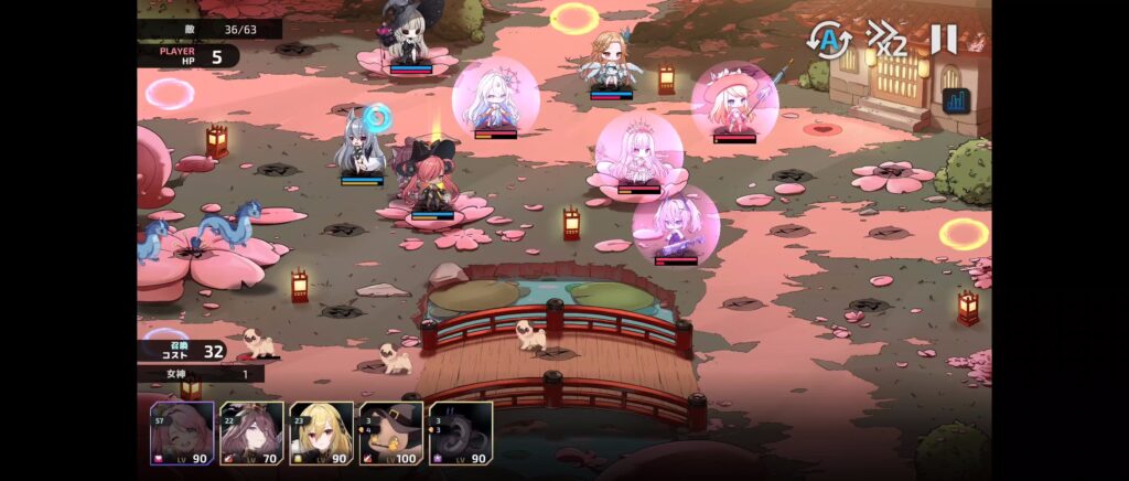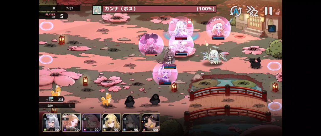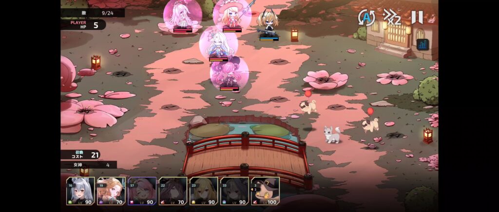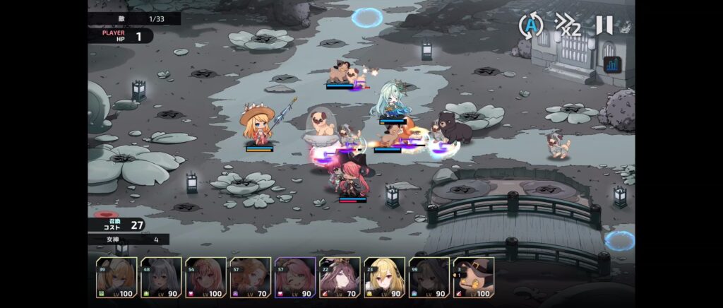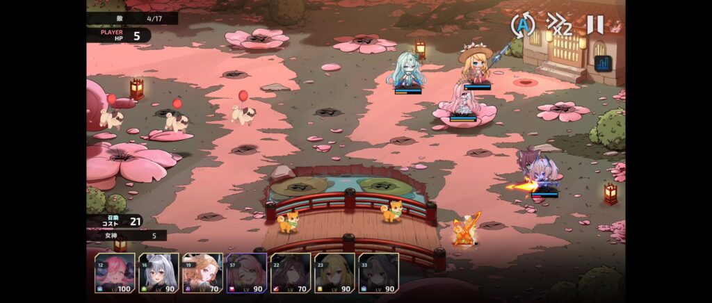 遠距離キャラのコストが3倍になっていて配置できるキャラが限られるので育っている1.2キャラで守ります
