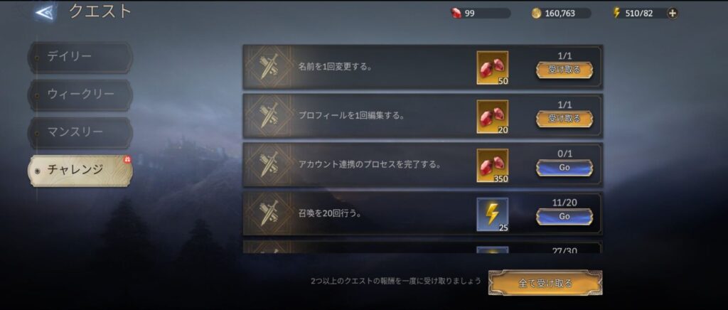 いろいろなところから報酬をかき集めてガチャを引きます。引けるのは10回ぐらいです。