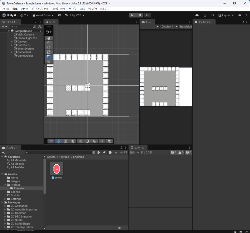 今回はUnity入門の森さんのタワーディフェンスの作り方を参考に、第2回の「【UGUIのCanvasを用いたUI画面の作り方】UGUIとスプライトでゲーム画面を作る」まで無事に完了しました。