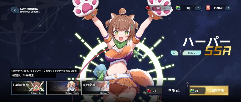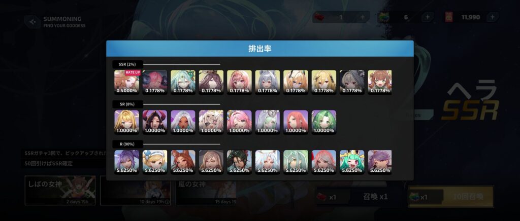 これでSSR9体所持で残り未所持はヘラだけになりました。